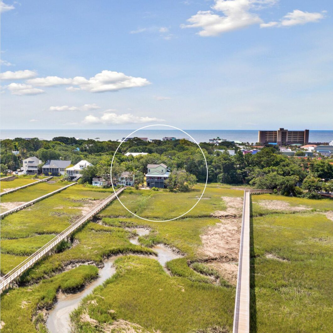 NEW CONSTUCTION!!! DEEP WATER!! Prominently situated on the marsh front of Folly Beach, this charming custom home has deep water access on the Folly River with a gorgeous shared dock and its own private boat slip. This is a turnkey opportunity to own a brand new slice of island paradise. You can spend your days lounging dockside watching sailboats along the waterway, admiring spectacular sunrises, or enjoying the plethora of recreational activities that Folly River has to offer. As you enter the property, you will notice the beautiful canopy of live oaks and tropical foliage that have remained untouched – surrounding you with unspoiled Lowcountry ambiance.Relax on the sprawling wrap-around porch where you can take full advantage of the coastal sunsets and summer breezes. Entering the pristine, open-concept kitchen, you will find a custom layout that gives you many wonderful opportunities for entertaining. The incredible, spacious main-level master suite is perfectly positioned on the back side of the house to take advantage of the best views of the marsh! Enjoy river views from the luxurious master bath, where his and hers sinks and a large walk-in closet give you plenty of room to pamper yourself. The home boasts three more charming bedrooms, one on the main level and two upstairs, each with its own sparkling en-suite.